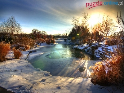 Puzzle Rzeka, Zachód, Słońca, Rośliny