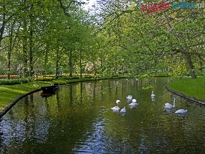 Puzzle Rzeka, Park, Wiosna, Łabędzie