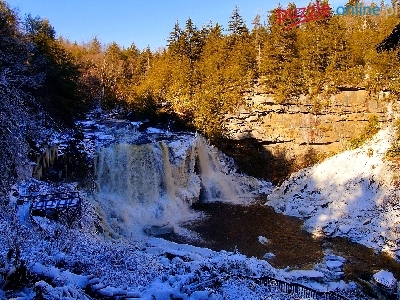 Puzzle Rzeka, Skały, Wodospad, Śnieg