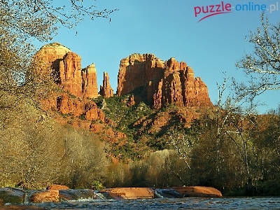 Rzeka, Drzewa, Arizona, Skały, Zarośla, Sedona