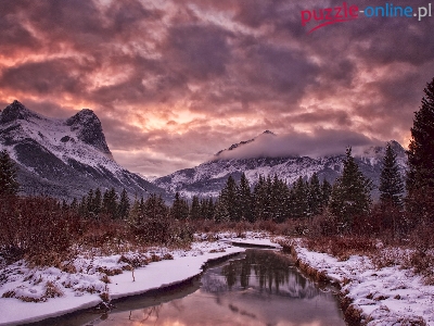 Rzeka, Canmore, Góry, Kanada, Zima, Drzewa