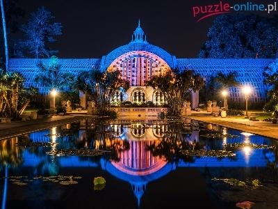 Puzzle Sadzawka, Oświetlona, Budowla, Drzewa