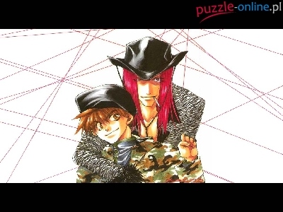 ciastko, Saiyuki, pizza płaszcz, Saiyuki, okulary, ludzie postacie, Saiyuki, twarze ludzie, Saiyuki, pistolety w zeileni, Saiyuki, postać kumple, Saiyuki, okulary samobójca, Saiyuki, pistolet Saiyuki, peleryna cygaro, ludzie, Saiyuki człowiek, Saiyuki, topór, facet Saiyuki, postacie ludzie, Saiyuki, kadr, ręka Saiyuki, kraty fioletowe tło, Saiyuki, postacie