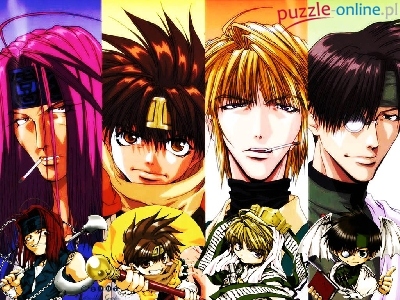 ciastko, Saiyuki, pizza płaszcz, Saiyuki, okulary, ludzie postacie, Saiyuki, twarze ludzie, Saiyuki, pistolety w zeileni, Saiyuki, postać kumple, Saiyuki, okulary samobójca, Saiyuki, pistolet Saiyuki, peleryna cygaro, ludzie, Saiyuki człowiek, Saiyuki, topór, facet Saiyuki, postacie ludzie, Saiyuki, kadr, ręka Saiyuki, kraty fioletowe tło, Saiyuki, postacie