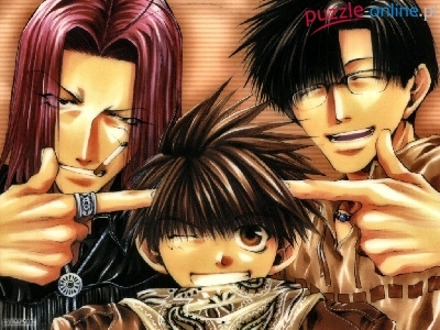 Saiyuki, garnitury siatka, tabliczka, Saiyuki, płot, ludzie Saiyuki, manga samuraj postacie, Saiyuki, twarze ludzie, Saiyuki, piórka Saiyuki Saiyuki, wielka blondyna ludzie, Saiyuki, kadr, ręka sale, Saiyuki, człowiek Saiyuki, chiński napis smakołyki, Saiyuki, ludzie laska, Saiyuki, pistolet, ludzie pistolet, Saiyuki, rany motyle, Saiyuki, ludzie, papieros