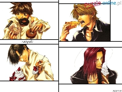 ciastko, Saiyuki, pizza płaszcz, Saiyuki, okulary, ludzie postacie, Saiyuki, twarze ludzie, Saiyuki, pistolety w zeileni, Saiyuki, postać kumple, Saiyuki, okulary samobójca, Saiyuki, pistolet Saiyuki, peleryna cygaro, ludzie, Saiyuki człowiek, Saiyuki, topór, facet Saiyuki, postacie ludzie, Saiyuki, kadr, ręka Saiyuki, kraty fioletowe tło, Saiyuki, postacie