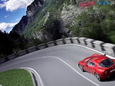 Puzzle Samochód, Alfa Romeo, Czerwony, Droga