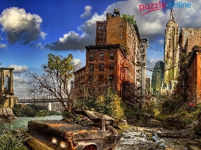 Puzzle Samochód, Nowy Jork, Zniszczony, Ruiny