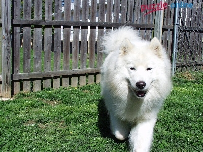 Puzzle drewniany, Samojed, płot