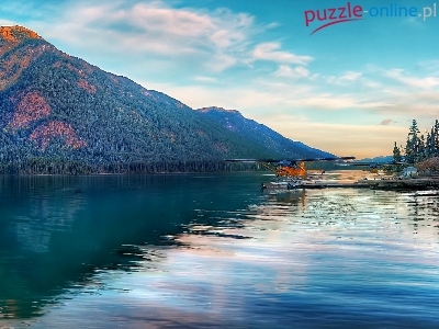 Puzzle Samolot, Góry, Jezioro, Wodolot