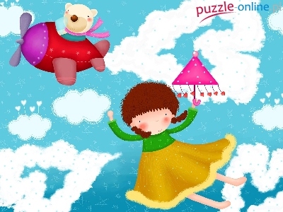 Puzzle Samolot, Dziecko, Misiu, Parasol