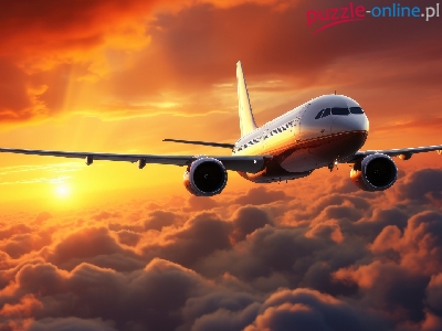 Puzzle Słońce, Samolot pasażerski, Chmury, Grafika