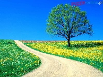 Puzzle Samotne, Wiosna, Dróżka, Drzewko