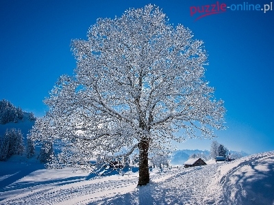 Samotne, Drzewo, Ośnieżona, Górka, Oszronione