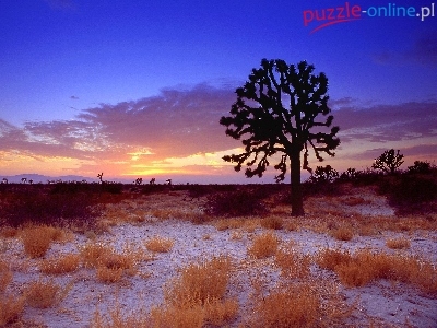 Puzzle Samotne, Zachód, Słońca, Drzewo