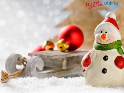 Sanki, Bombki, Boże Narodzenie, Bałwanek, Śnieg
