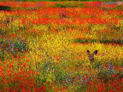 Puzzle Sarna, Łąka, Kwiaty, Głowa