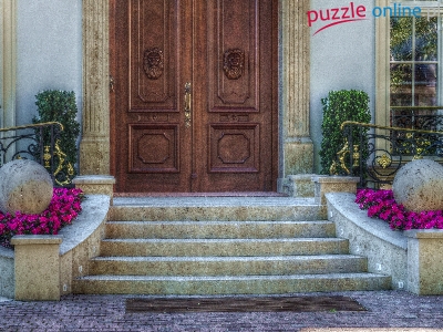 Schody, HDR, Budynek, Drzwi, Kwiaty