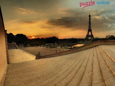 Schody, wieża, Słońca, Francja, Eiffla, Zachód