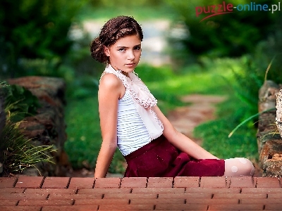 Puzzle Schody, Dziewczynka, Ogród, Donice