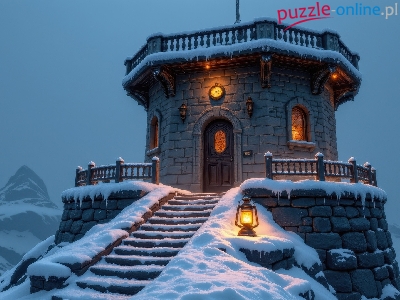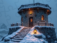 Oświetlona, Schody, Wieża, Lampion, Śnieg
