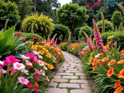 Lato, Kwiaty, Ogród, Ścieżka, Grafika AI, Drzewa