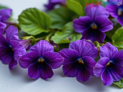 Zielone, Fioletowe, Kwiaty, Sępolia, Listki, Fiołki afrykańskie