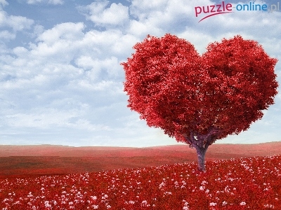 Puzzle Serce, Czerwone, Drzewo, Walentynki