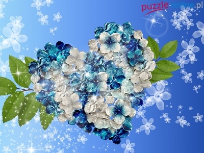 Puzzle Serce, Kwiaty, Liście, Grafika