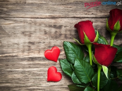 Puzzle Serduszka, Czerwone, Róże, Walentynki