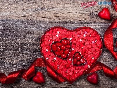 Serduszka, Czerwone, Walentynki, Miłość, Serce, Wstążka