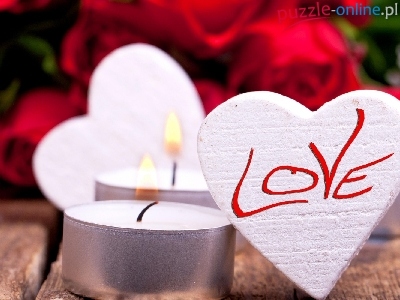 Puzzle Serduszka, Walentynki, Świece, Miłość