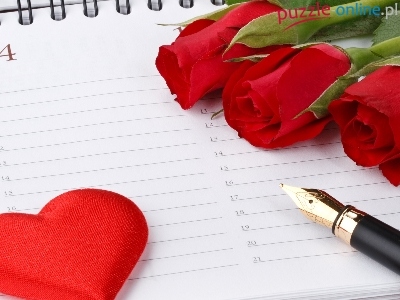 Puzzle Serduszko, Róże, Kalendarz, Pióro