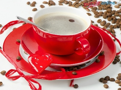 Serduszko, Walentynki, Filiżanka, Kawy, Ziarna