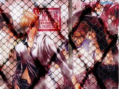 siatka, tabliczka, Saiyuki, płot, ludzie