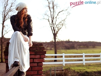 Puzzle Kobieta, SiedzÄ…ca, Ogrodzenie