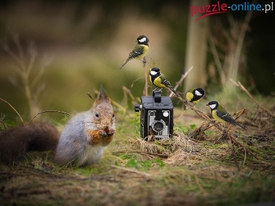 Puzzle Sikorki, Wiewiórka, Aparat fotograficzny