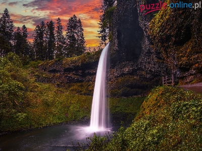 Wodospad, Stany Zjednoczone, Silver Falls State Park, Drzewa, Park stanowy, Oregon, South Falls