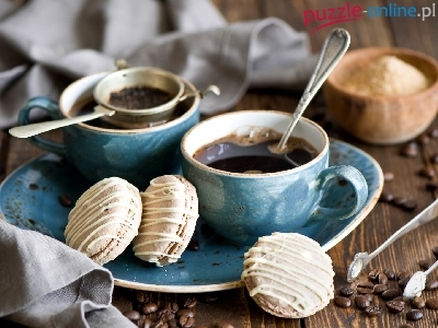 Filiżanki, Sitko, Ziarna, Ciastka, Kawa, Talerzyk, Cukier