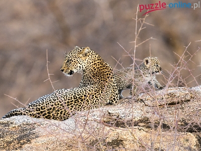 Puzzle Skała, Lamparty, Kocię, Rośliny