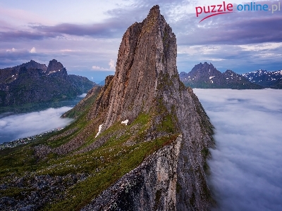 Senja, Segla, Góry, Skała, Norwegia, Mgła