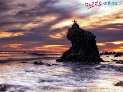 Puzzle Skała, Zachód, Słońca, Morze