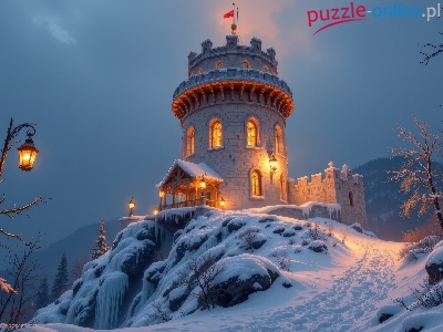 Puzzle Wieża, Zima, Oświetlona, Skała