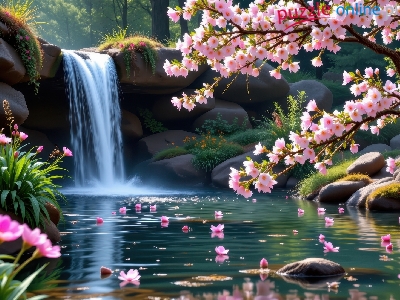 Skała, Mały, Las, Wodospad, Kwiaty, Rośliny, Wiosna, Rzeka, Drzewa