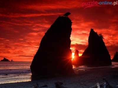 Puzzle Skała, Plaża, Zachód Słońca