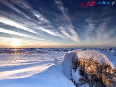 Skałka, Zima, Zachód, Słońca, Śnieg