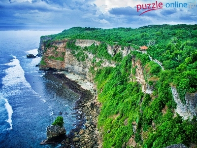 Puzzle Skalne, Porośnięte, Urwisko, Morze