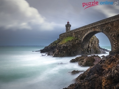 Bretania, Most, Skały, Morze Celtyckie, Francja, Zatoka, Latarnia morska Petit Minou