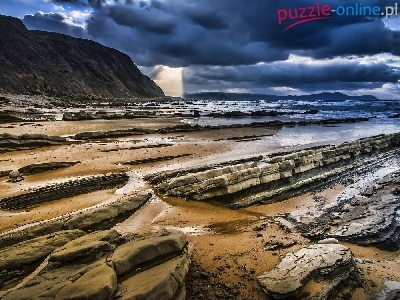 Puzzle Skały, Burzowe, Chmury, Morze