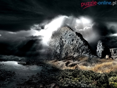 Puzzle Chmury, Skały, Promienie